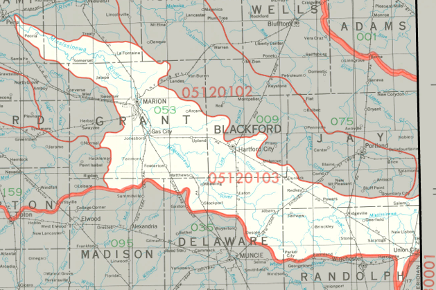 The United States Geological Survey has assigned the Mississinewa Watershed an 8-Digit Hydrologic Unit Code of 05120103.