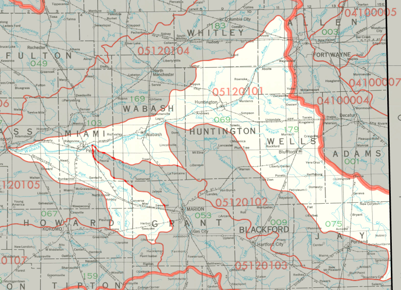 The United States Geological Survey has assigned the Upper Wabash Watershed an 8-Digit Hydrologic Unit Code of 05120101.